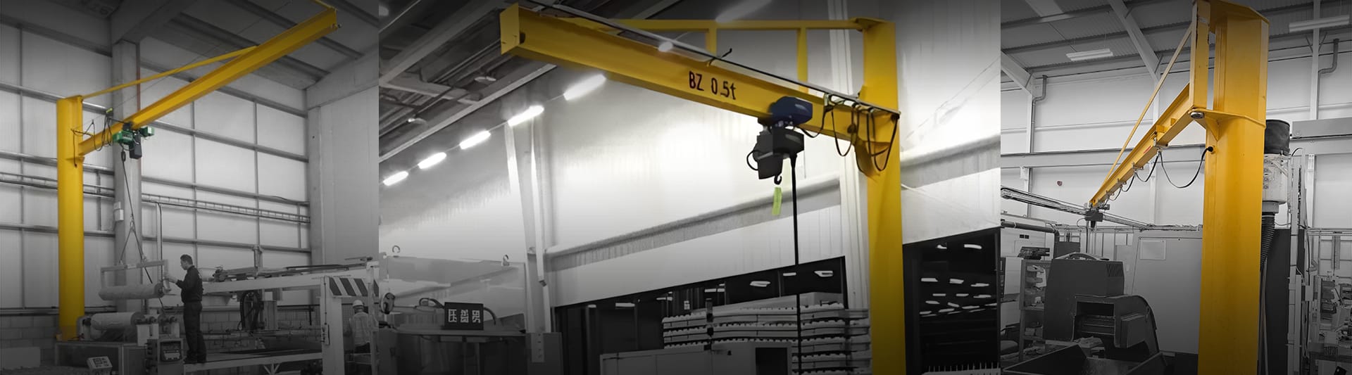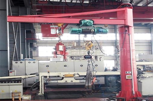 The tie rod free standing jib cranes with I-beam are mainly used in machining workshops and equipment maintenance stations for lifting and precise positioning of small to medium-sized metal parts, mechanical components, tooling fixtures, and molds within a fixed working area. The crane is mounted on an independent column, allowing it to serve individual or adjacent workstations. During operation, the electric hoist travels smoothly along the I-beam jib, while the jib arm rotates around the column to enable short-distance material handling between machine tools, workbenches, and surrounding equipment. The tie rod free standing jib cranes with I-beam are commonly applied in machine loading and unloading, parts assembly, maintenance operations, mold changeover, and tooling adjustment, effectively reducing manual handling effort while improving operational safety and on-site efficiency.