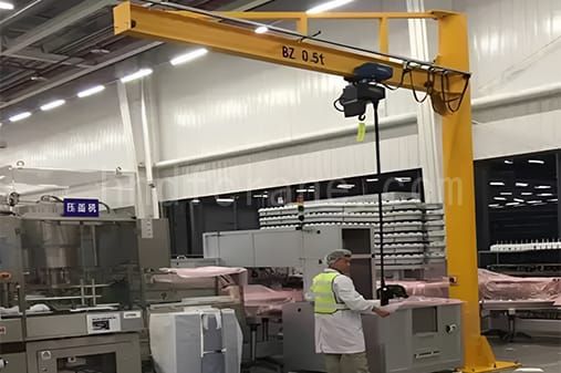 This pillar jib cranes with I-beam is typically used in indoor workshops, production areas, and assembly stations for localized lifting, rotating, and precise positioning of materials. The crane is floor-mounted with a vertical column, and the I-beam jib is reinforced by a tie rod structure, allowing a wide working radius without relying on the building roof or overhead support. During operation, the electric hoist travels along the jib beam while the jib arm rotates around the column, enabling efficient movement of loads from storage areas to machining, assembly, or maintenance positions. It is commonly applied in machinery manufacturing, equipment maintenance, parts assembly, and general fabrication workshops where frequent short-distance lifting is required.