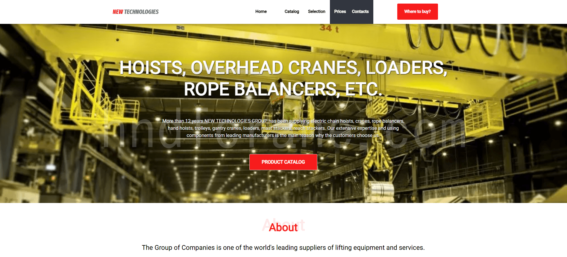 Il portafoglio prodotti di New Technologies Group comprende paranchi elettrici a catena, gru, bilanciatori a fune, paranchi manuali, carrelli, gru a portale, caricatori, carrelli elevatori a colonna e reach stacker. L'azienda si concentra sulla fornitura di attrezzature efficienti, sicure e affidabili per soddisfare le esigenze di movimentazione dei materiali in diversi ambienti industriali. Combinando una pluriennale esperienza con componenti di produttori leader a livello mondiale, New Technologies Group è diventato il produttore di gru EOT russo preferito da molte aziende in Russia e nella CSI.