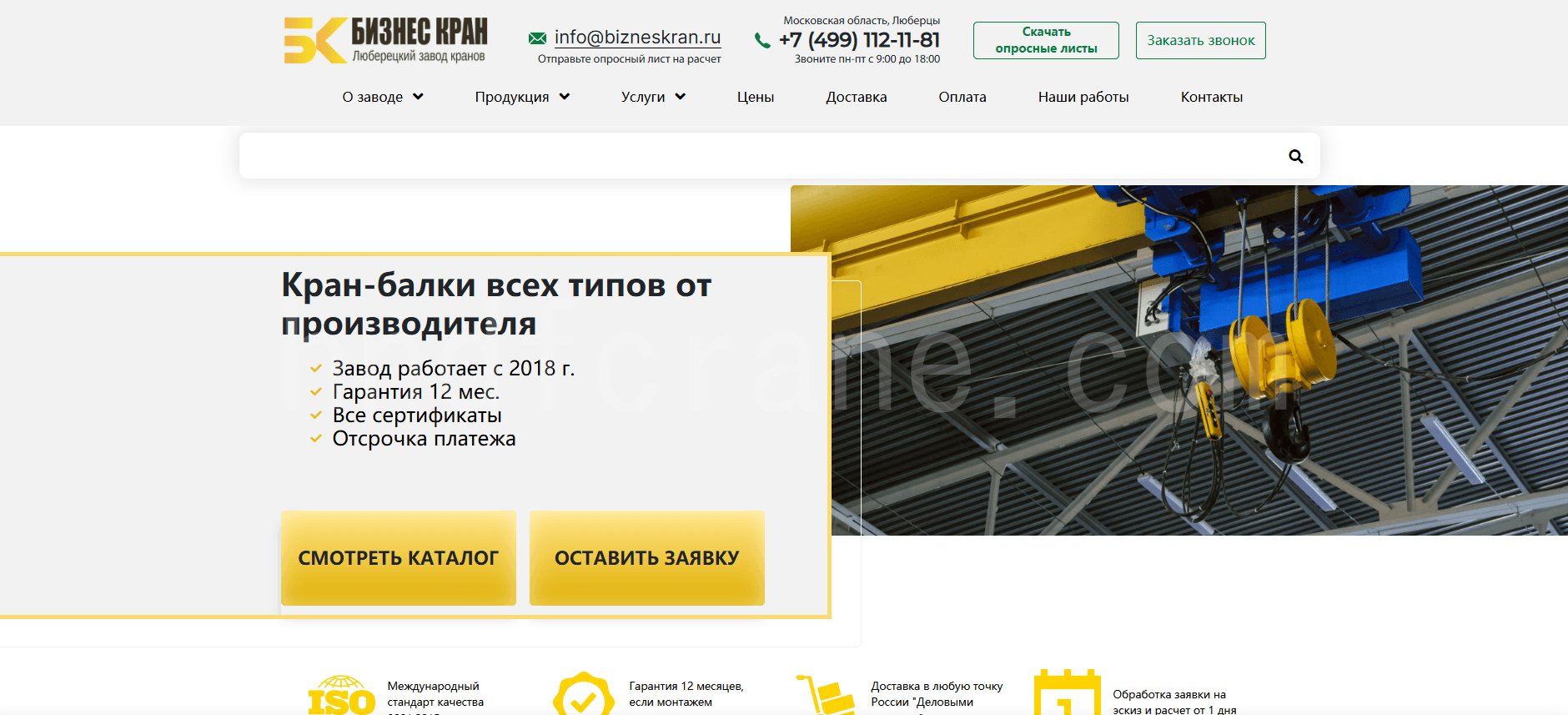 Бизнес Кран è un noto produttore russo di gru EOT, che offre servizi di progettazione, fornitura, installazione e manutenzione in Russia, nei paesi della CSI, nonché in Europa e Asia. L'azienda si concentra sulla fornitura di soluzioni di gru efficienti e affidabili a supporto dell'automazione in diverse attività industriali e di magazzino, migliorando la redditività dei clienti.