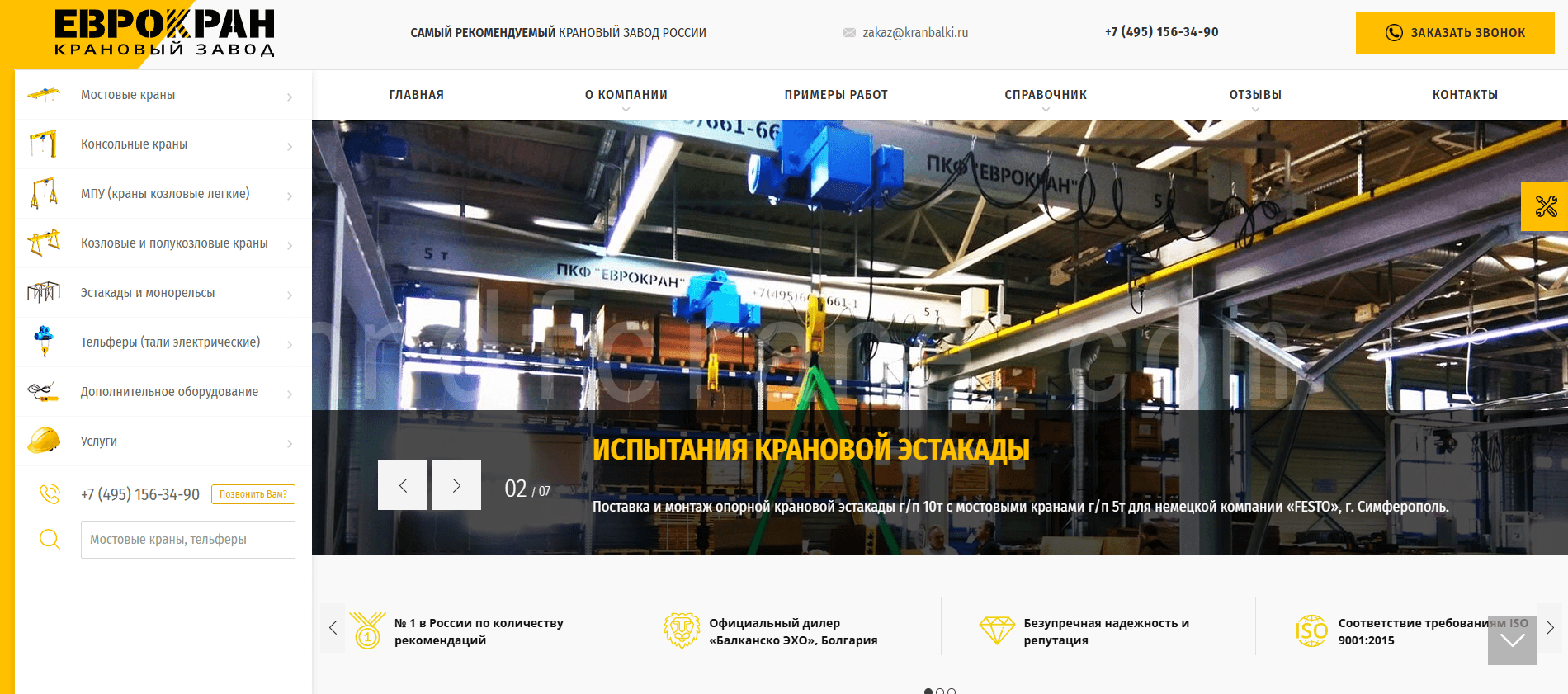 ЕВРОКРАН è uno dei principali produttori russi di gru EOT, con sede nella regione di Mosca. Fin dalla sua fondazione nel 2009, l'azienda è stata costantemente valutata come "il produttore di gru più raccomandato in Russia". Gestisce i propri stabilimenti produttivi con un ciclo di produzione completo, che comprende progettazione, lavorazione dei metalli, assemblaggio elettrico e collaudo, il tutto sotto lo stesso tetto per garantire una qualità costante.