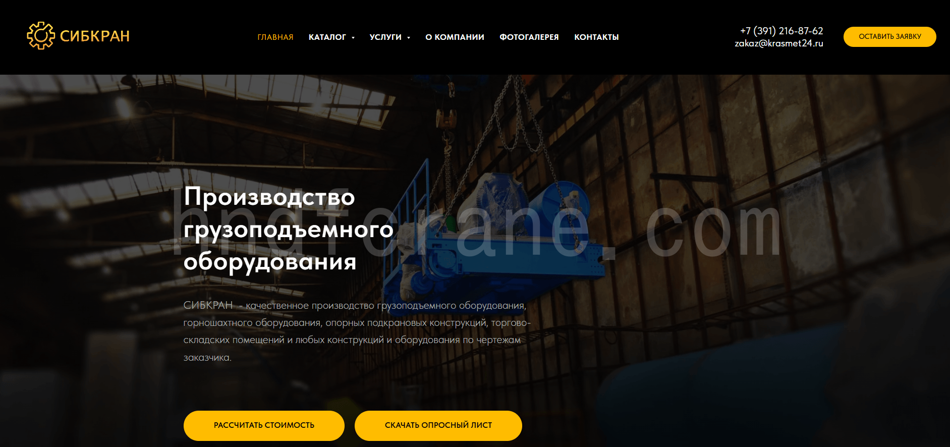 СИБКРАН, con sede a Krasnoyarsk, è un noto produttore russo di gru EOT per le esigenze industriali e dell'economia nazionale. L'azienda è specializzata in gru, paranchi elettrici e piattaforme per gru a ponte, collaborando a stretto contatto con aziende minerarie, di trasporto, di costruzione e di stoccaggio. СИБКРАН gestisce un moderno laboratorio di oltre 4.000 m² con ampie attrezzature di produzione, in grado di realizzare strutture metalliche di varie dimensioni e configurazioni, tra cui banchine, magazzini, stabilimenti industriali, edifici per uffici, centri espositivi e strutture di supporto.