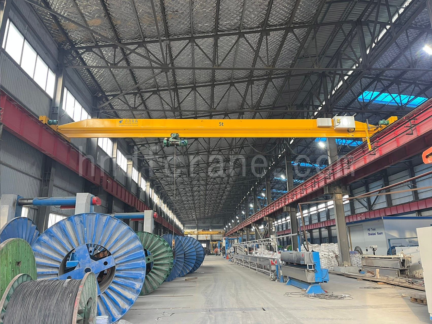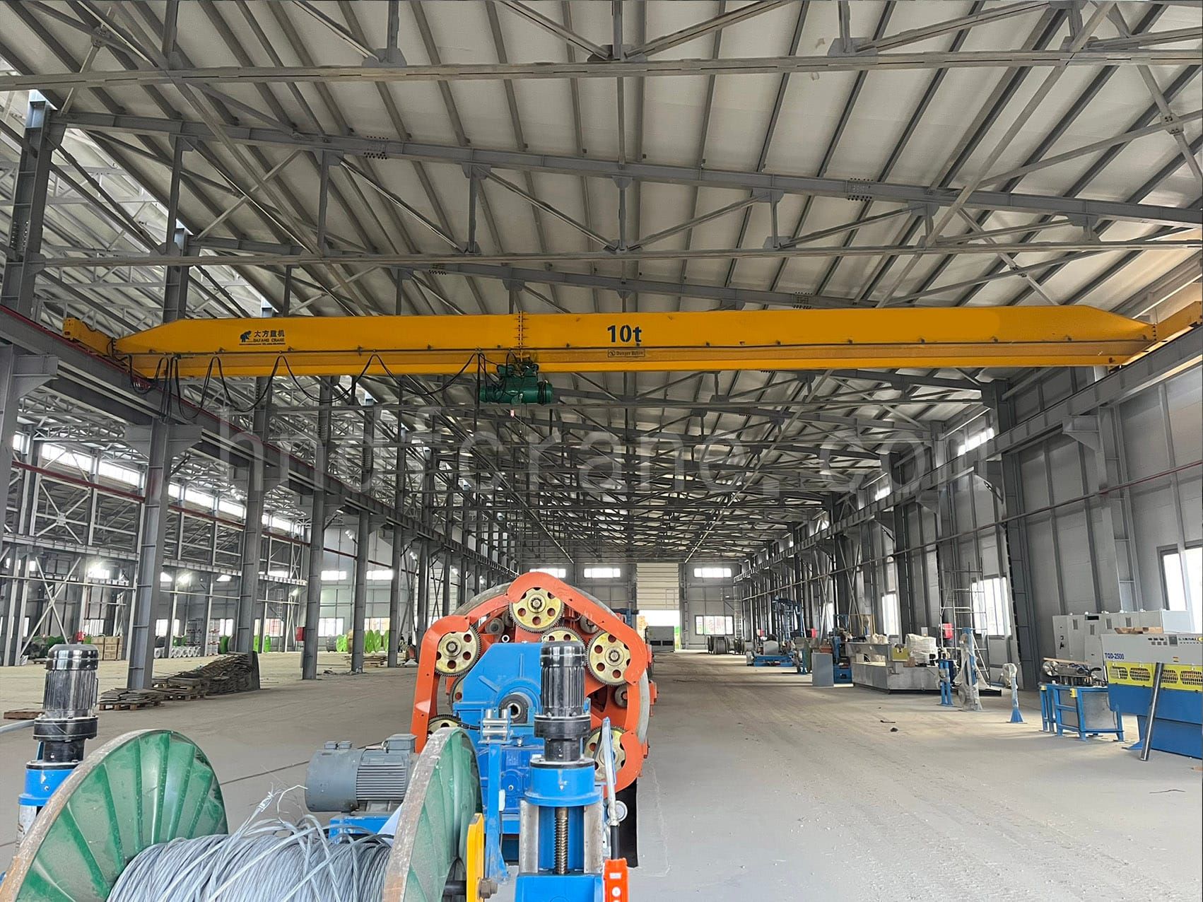 Dafang Crane recently successfully delivered and installed 6 customized overhead cranes (2 of 10 tons and 4 of 5 tons) for a cable factory in Uzbekistan. The project not only involves providing equipment for the customer’s new workshop, but also overcomes the complex technical problems of upgrading and transforming the original track of the old workshop.