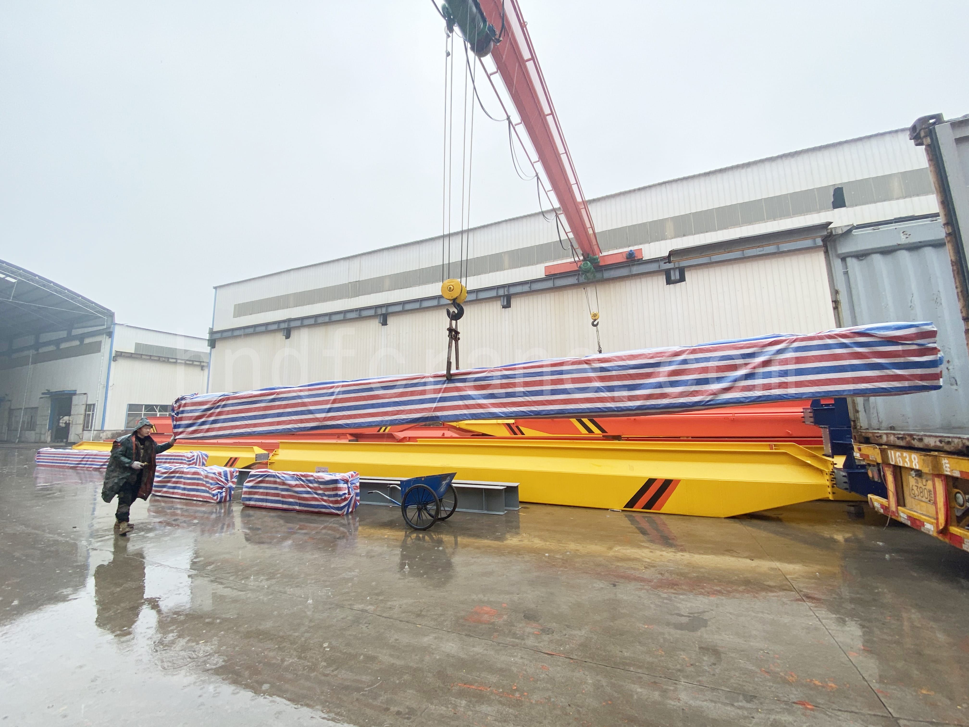 For such a long object to be lifting, one crane with one hook was not recommended because it would be difficult to maintain balance. So we suggested using two cranes to lift the load together. Knowing that the max weight of the load would not exceed 6 ton, we were sure two 5 ton overhead cranes were well enough for the work.