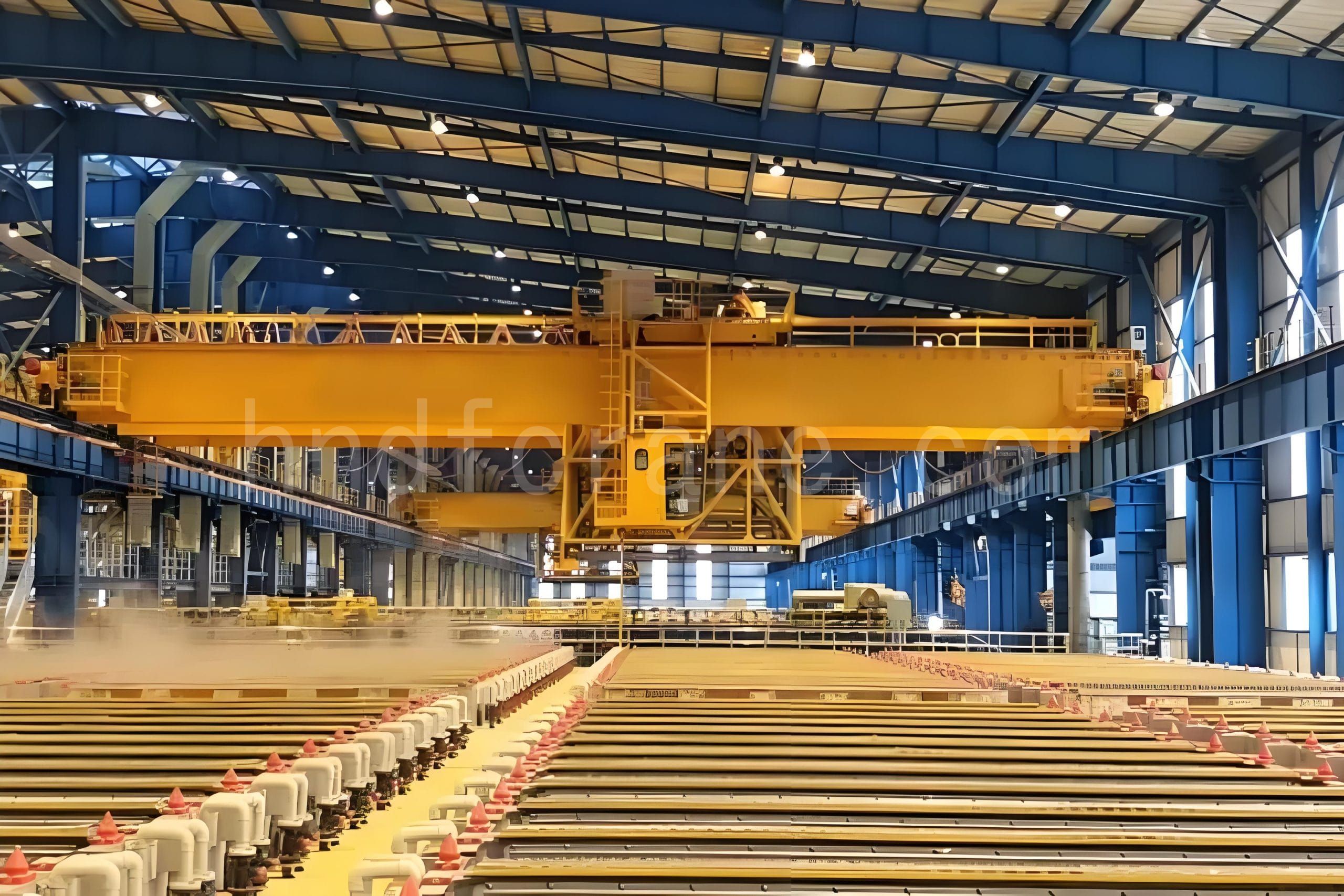 Typical application scenarios include the automated loading and unloading of cathode/anode plates, plate transfer and stacking, and electrolytic cell maintenance operations. The crane is especially suitable for continuous production in highly corrosive environments and is capable of meeting the large-scale, high-intensity, and high-precision production requirements of modern copper smelting facilities.