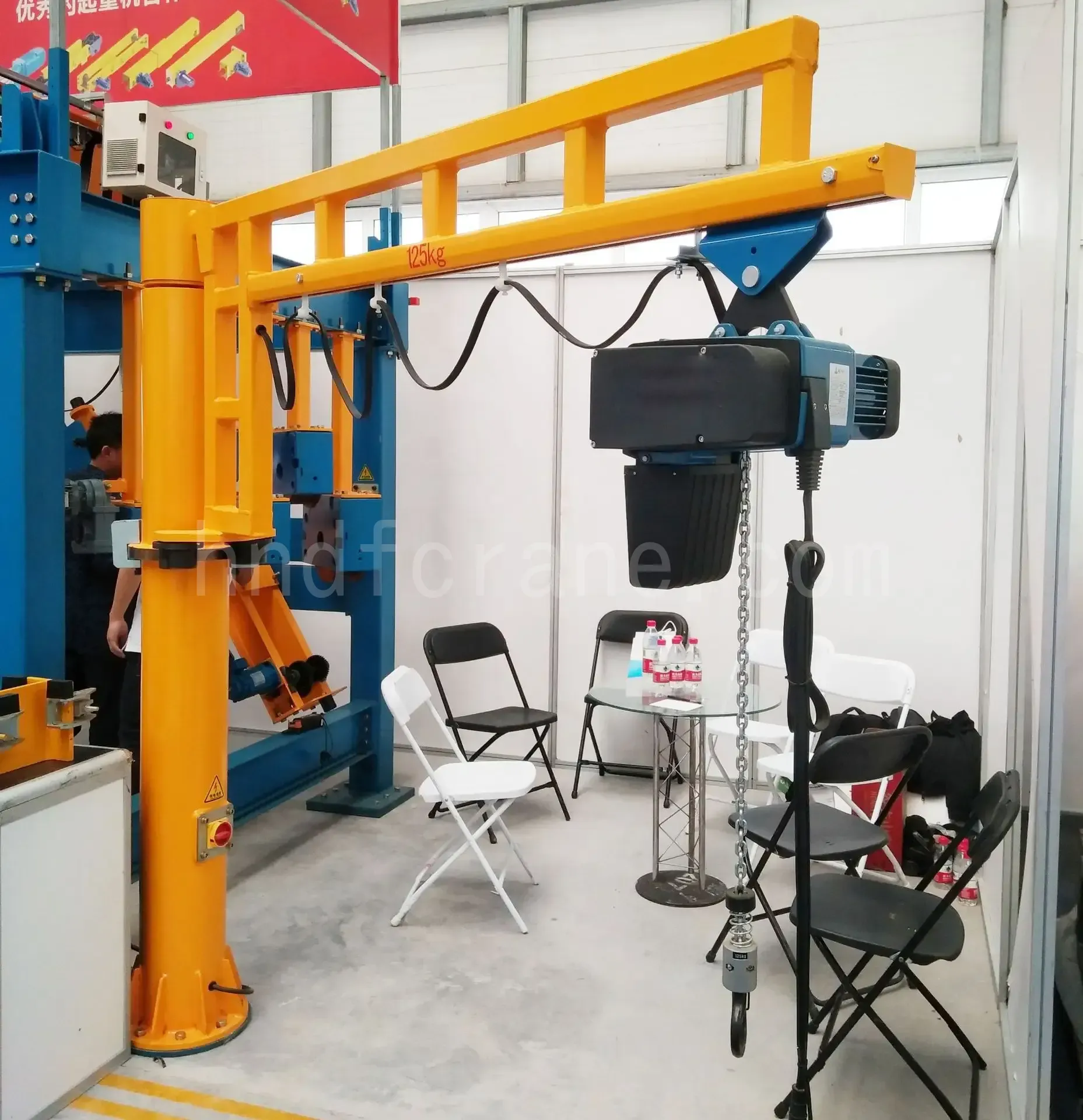 Enclosed track jib cranes adopts C type rail c type rail material with a low headroom design. Enclosed track jib cranes are a kind of manually operated lifting equipment. The manual pulley facilitates lifting and moving goods bymanual pulling. It is used for cargo handling and loading and unloading on industrial production lines. Enclosed track jib cranes consist of an I-beam column, a manual pulley, a truss-type cantilever beam, and a control system. Allows you to use all possible space. Due to its compact design, it is an ideal choice for applications where the plant floor height is low but a lifting height is required. When installed on a column or wall, its rotation angle can reach 180°; when installed on the floor, its rotation angle can reach 360°. It can usually be fixed directly on your existing floor without the need to build a special foundation. Compared with the traditional I-beam cantilever, it is easier to move and adjust the position. Most of them can be directly fixed on the existing floor without the need to add a special foundation. The boom of this steel enclosed rail working platform is lighter in weight and rotates more smoothly, which has more advantages than traditional I-beam cranes.